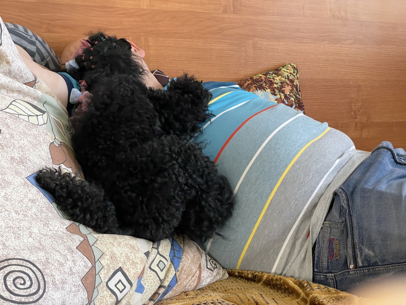Попили они чай и все мы отправились на прогулку. Первые десять минут я всё оборачивался и высказывал свое неудовольствие, что Цезарь с нами идет. Мама меня обозвала злобным пуделем и начала вкусняшками меня отвлекать. Тут уж не разборок мне стало. Поэтому дальше я спокойно бежал впереди, показывая дорогу. На полянке Таня позанималась с Цезарем выставочной подготовкой и отработкой команды «ко мне», мама надавала ей тьму советов и рекомендаций. Так что прогулка получилась полноценная.