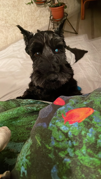 Ну и натворил же я сегодня дел. А что делать? Привели Цезаря, я сразу в бой, моя квартира, не нужен нам еще один цверг. В итоге нас с Вилькой закрыли в спальне, а мама стригла из Цезаря породистую собаку, «нарисовала» ему форбруст, коленку и голову сделала кирпичом, как положено по породе. Получился симпатяга хоть куда. Всё-таки косметическая стрижка цверга очень облагораживает и украшает.
