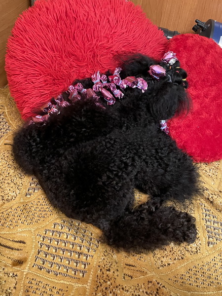 Приехала ко мне в ноябре выходить замуж красавица Дени черная. Она летом в Санкт-Петербурге специально на выставку приходила, посмотреть на меня живьем и оценить, достойный ли из меня муж получится. А уж когда я выиграл тьму тьмущую всего, да еще и ей подарок сделал, то и ее сердце покорил и ее хозяйки Полины. Поля еще раз осенью приезжала на выставку поболеть за меня и я опять не подвел будущую тещу, выиграл много и …передал свои подарки Дени, чтобы не забывала Юрика.