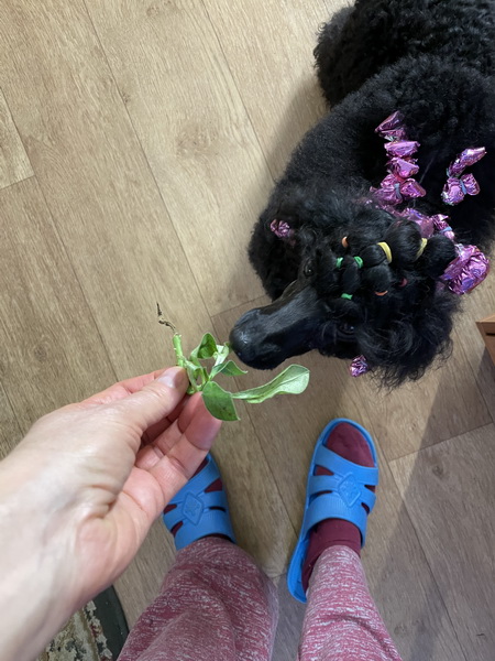 После подготовки к выступалке у нас с мамой наступил период лени. Ничего тренировать не хотим. А оставшимися от вчера вкуснышками она просто «зарядила» Вильке поисковый коврик, а мне кубик. Давненко такой радости у нас не было.![]()