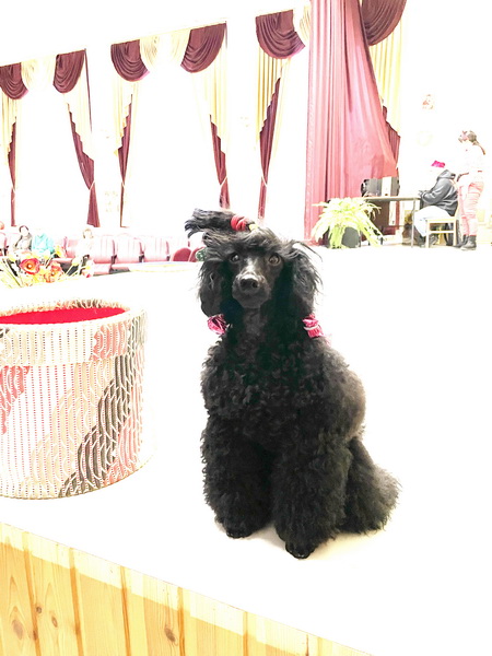 Наш новичок курцхаар Честер выступил чудесно, щенок бордер Дарси не подкачала, отработала всё, чему ее мама успела научить, Рика зенненхунд потрудилась симпатично, а Шерлок бордер с метисом Джонни показали классный номер «Волшебная кухня». Очень он нам понравился и их хозяйка Таня в костюме волшебницы была великолепна.