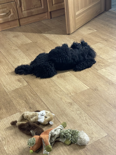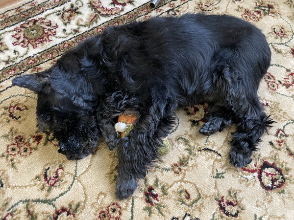 А Вилька забрал у меня игрушку, спрятал под своими лапами, да так и заснул, жадина.